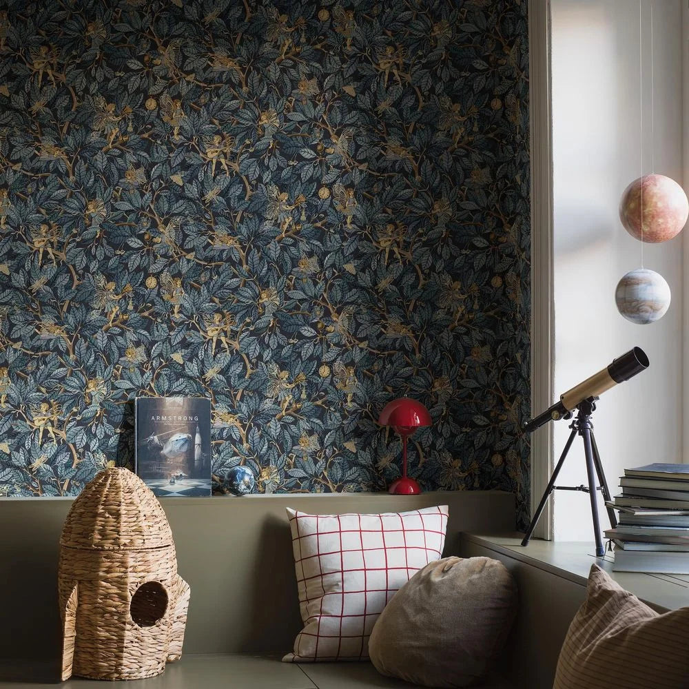 Step into the delicate canopy of a beech forest, where fairies, dragonflies and lanterns glisten in shimmering gold.