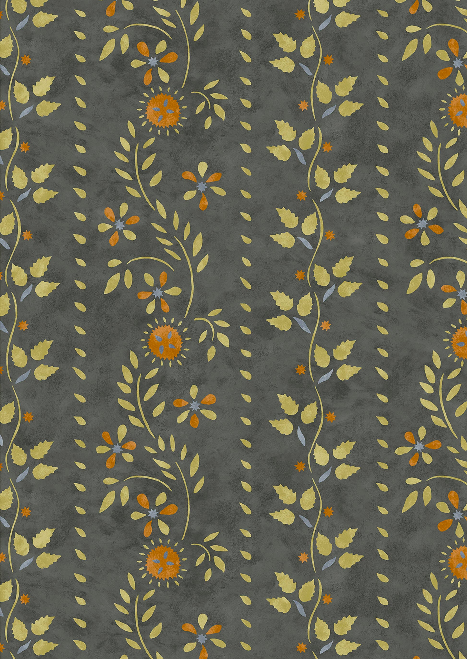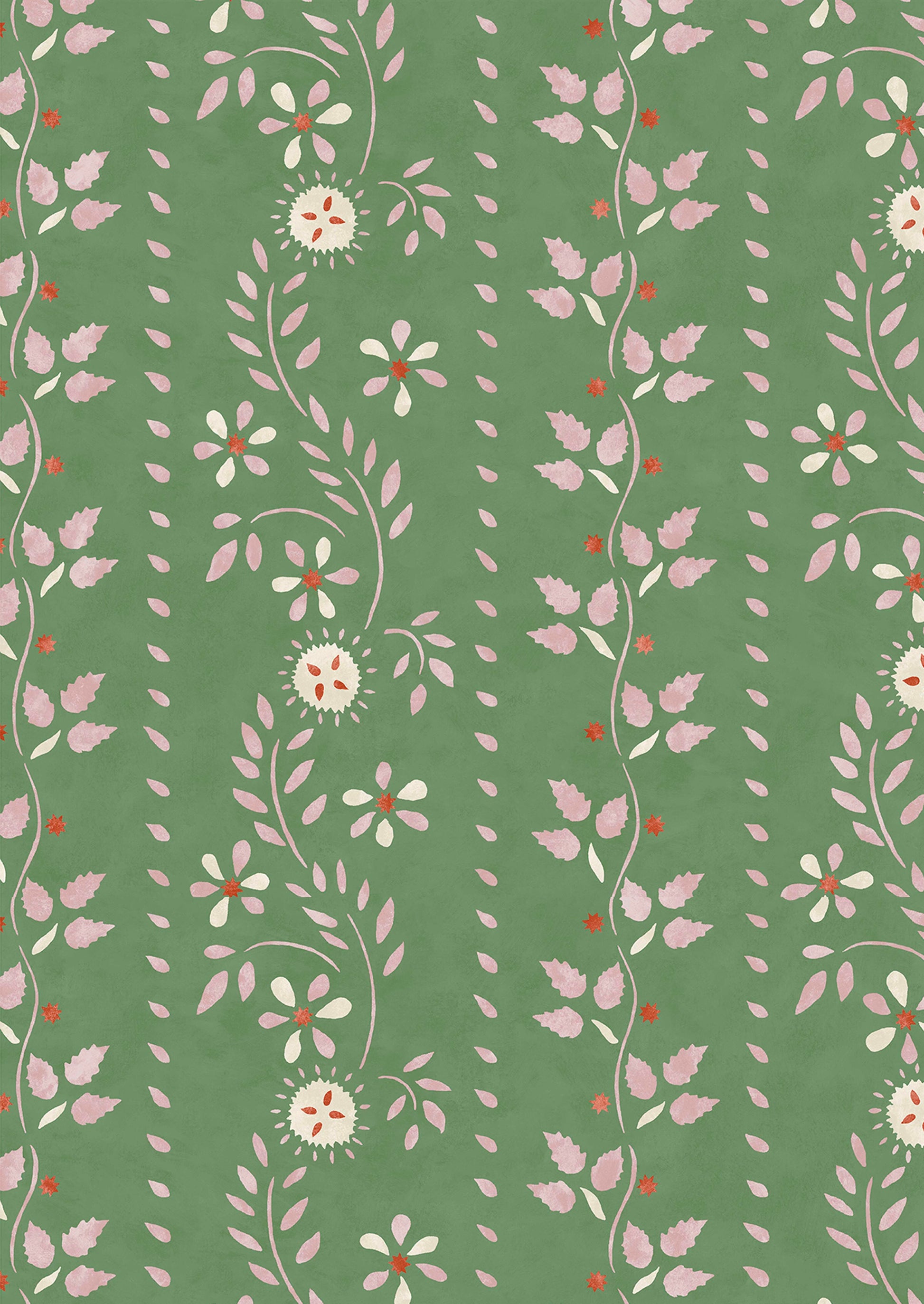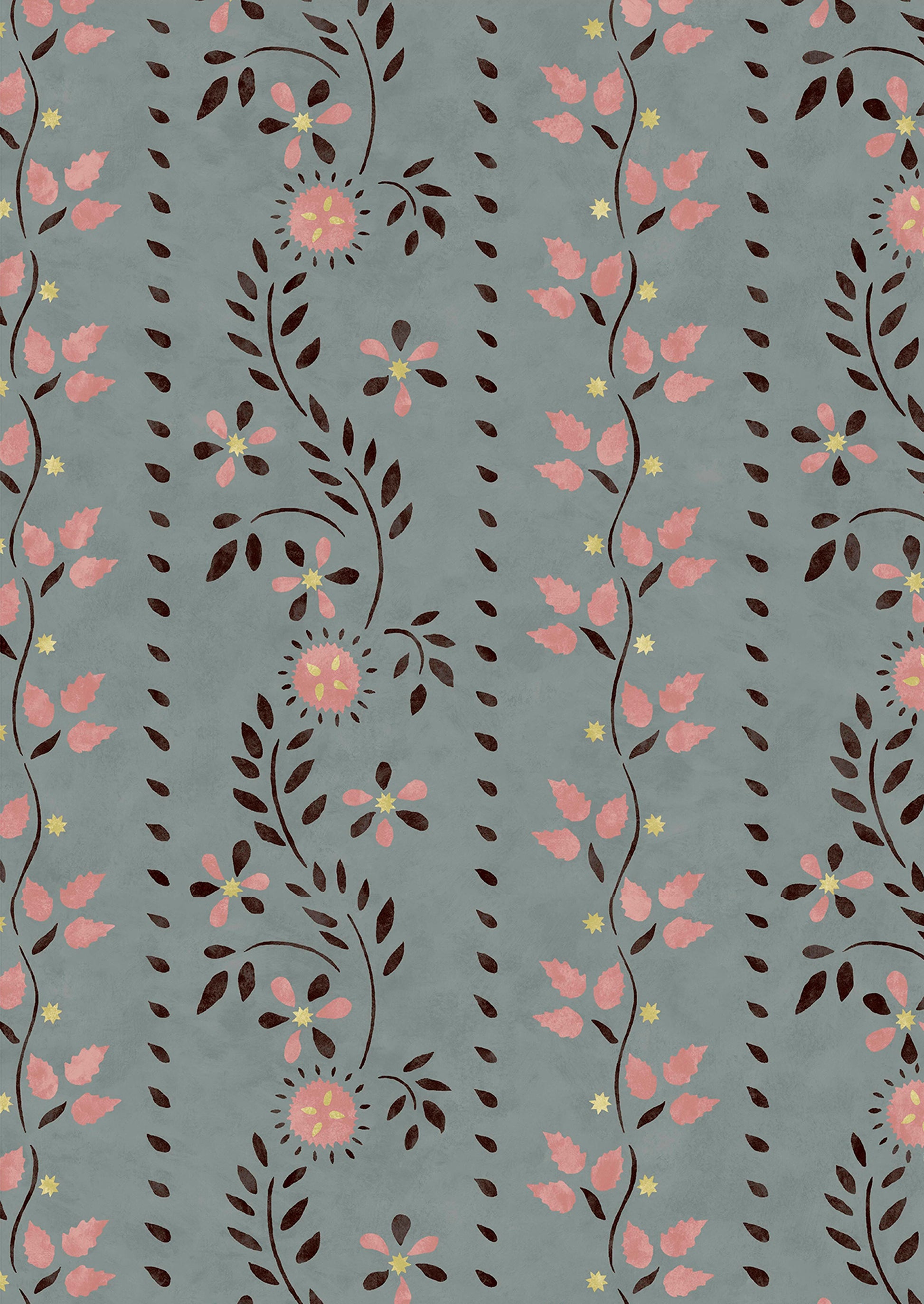 Based on a 19th century American stencil pattern now part of the collection in the American Museum in Bath. This antique wooden wall is believed to have been painted by master stenciller, Moses Eaton. Working from a photograph of the original we decided to replace one large leaf with individual strawberry leaves from Eaton’s archive.