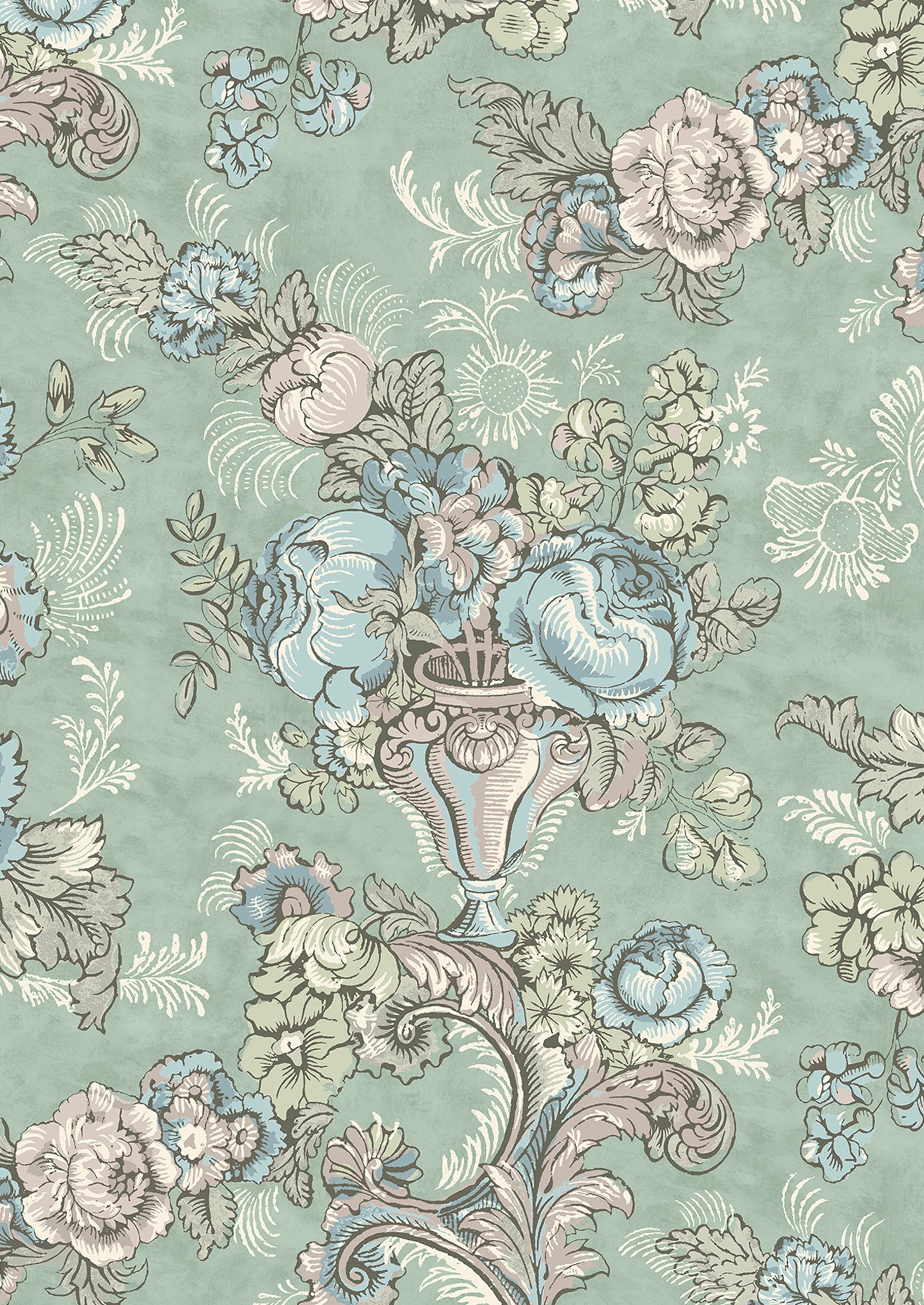 A big, bold pattern with a personal history. Based on a Georgian wallpaper discovered in 1966 by Philip Jebb, father of Lewis & Wood’s Creative Director Magdalen Jebb, in a derelict building in Brentford. He gave the wallpaper to John Fowler who later donated it to the V&A. The museum have kindly given us permission to reproduce it.