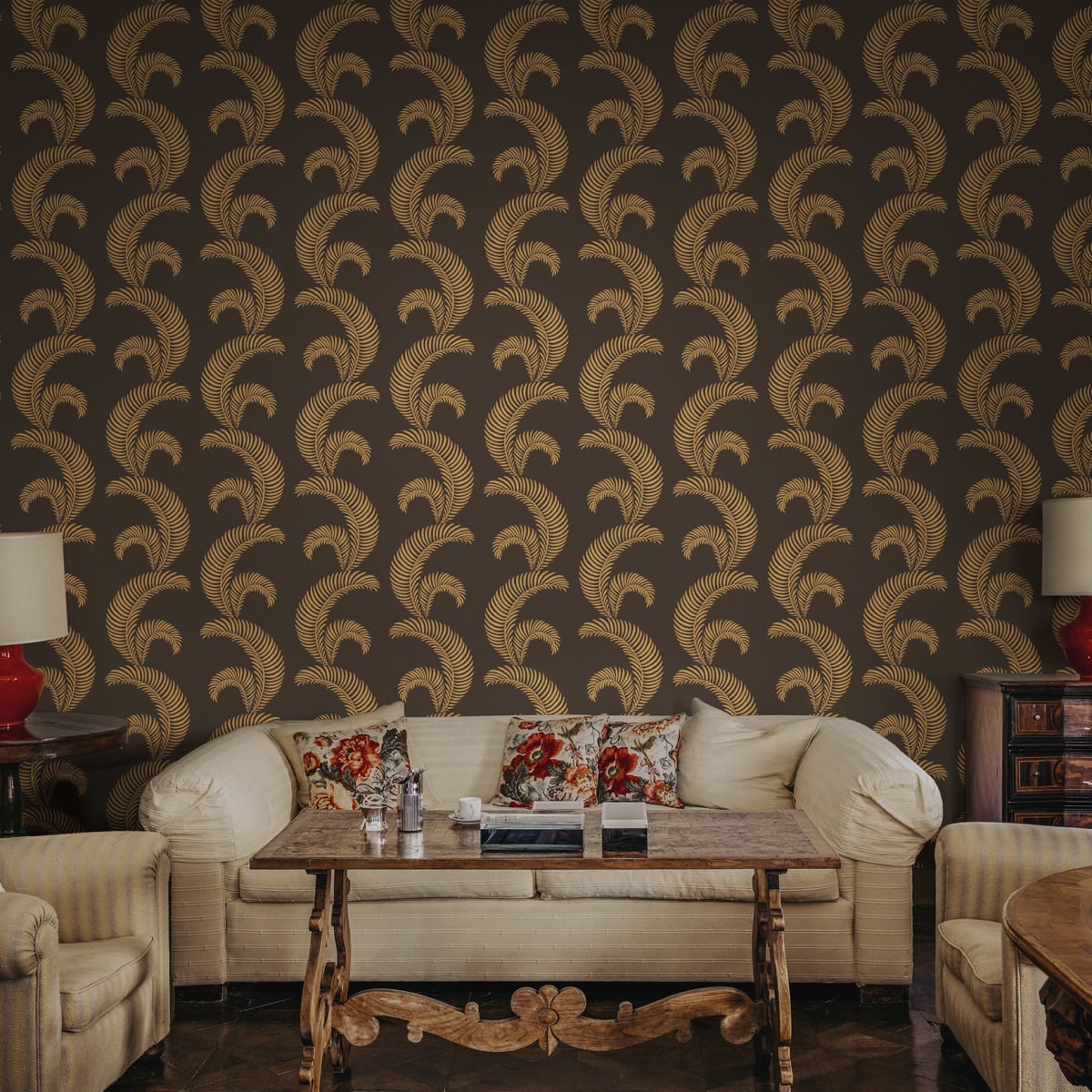 Sophisticated with a stylized edge, these graphic palm leaves lend a sleek and luxurious atmosphere to the room.