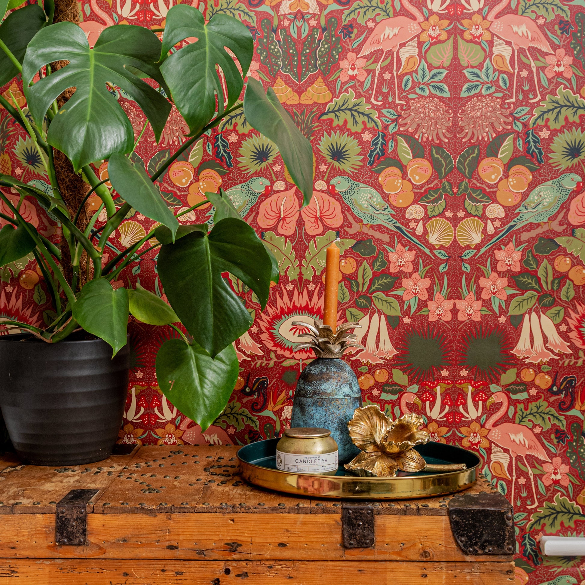 Oasis is our tropical inspired Arts and Crafts design featuring the mirroring techniques seen in the legendary print designer William Morris' work. Oasis is just that, a beautiful sanctuary that provides a tropical refuge amongst the busyness of day-day life.