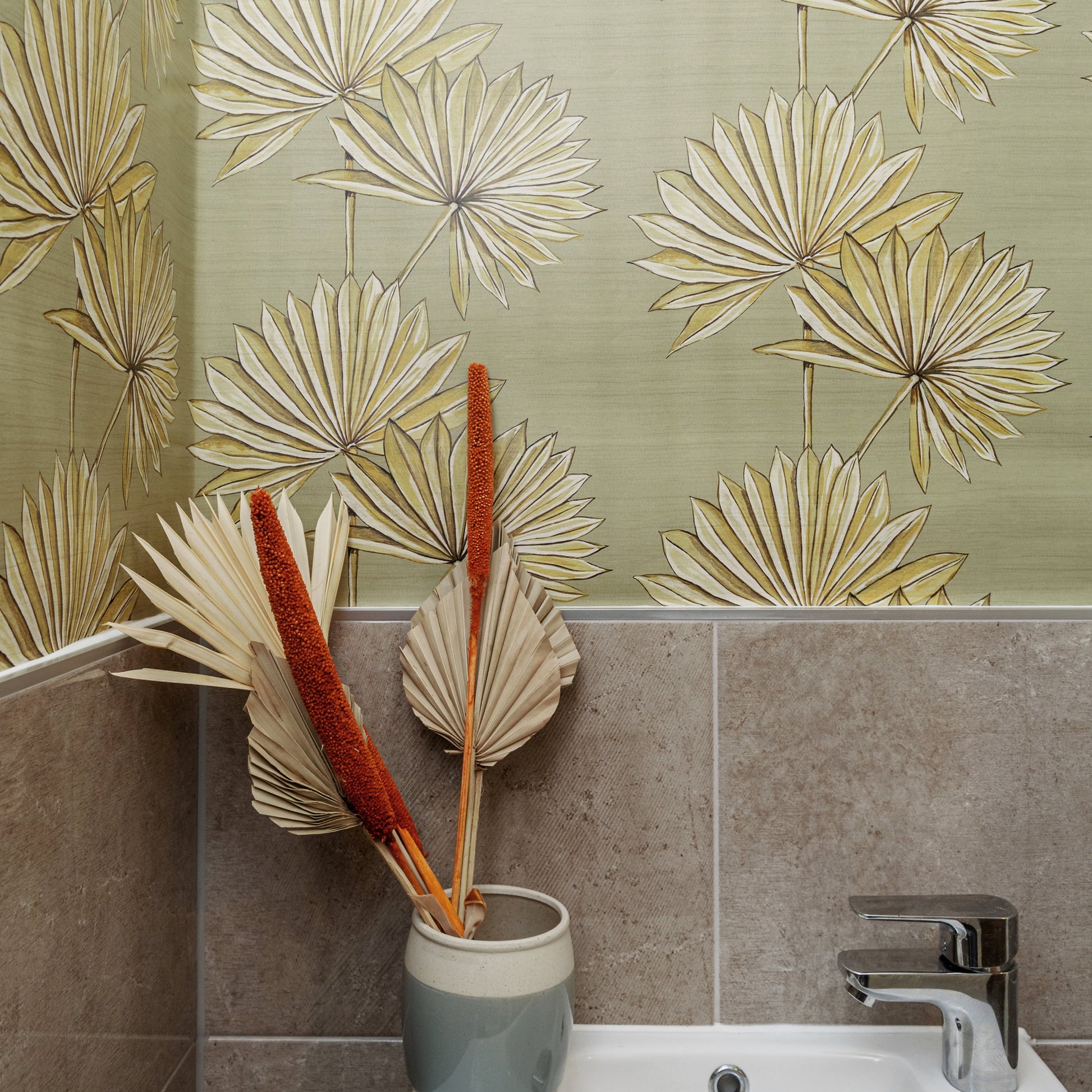 Palmetto is our gorgeous bohemian dried-palm print. Presenting hand-painted fan palms in an elegant linear-stripe formation. We have then layered a natural thick-weave linen texture on top which adds depth and a natural fabric quality to the surface of the paper.The name Palmetto is derived from the Serenoa Repens plant which is a small species of fan palm, occurring in Southern US states to Northern South America.