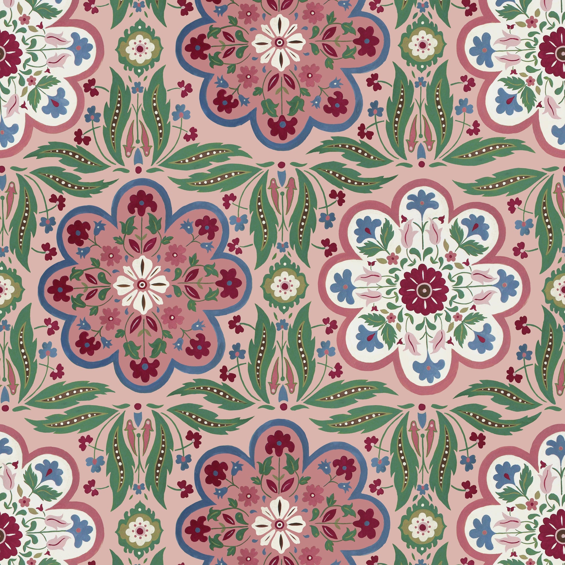Our Zouak Wallpaper in is a gorgeous geometric style print inspired by the beautiful painted ceilings of the Bahia Palace in Morocco. Our print pays homage to the craftmanship and skill of zouak, the name given to the traditional art of decorative wood painting. The compositions would emphasise symmetry and repetition giving a sense of depth and grandeur. Coloured in the earthy natural tones of polished stone conveying elegance and timelessness.